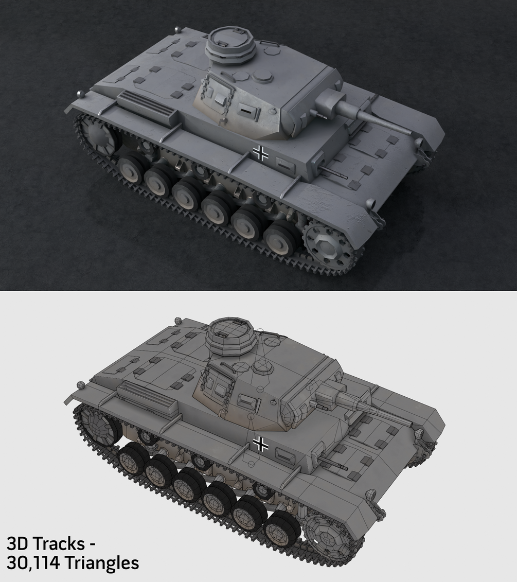 One, Completed Panzer 3 Vehicle (With track options) in FBX format + Unity Package with PBR support.